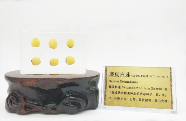 磨皮白莲:为睡莲科植物莲NelumbonuciferaGaertn.干燥成熟的磨去种皮的钻芯种子性状特征:颗粒近...
