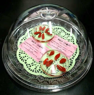 该图是一组不同产地的枸杞子标本:枸杞子(宁夏产)枸杞子(甘肃产)枸杞子甘肃茄科植物宁夏枸杞...